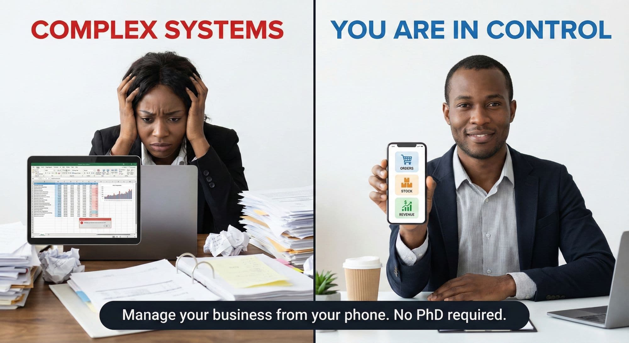 Manage orders, update stock, and track revenue from your phone. We provide a simple dashboard that doesn't require a PhD to use.